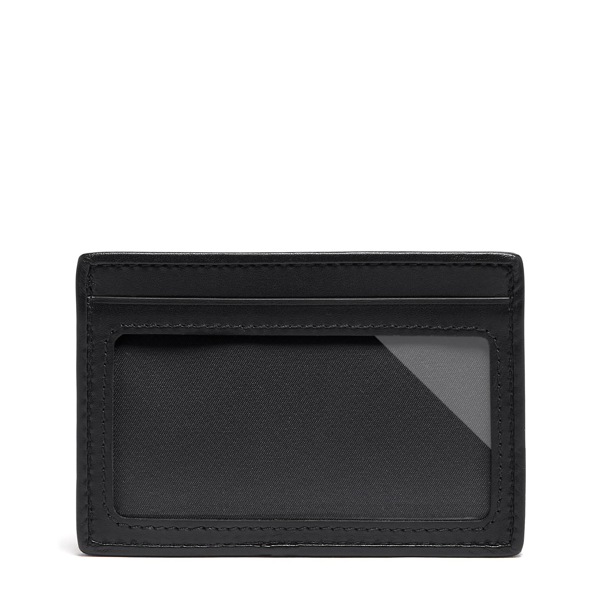 Keep life simple with this elegant, slim card case from our newly modernized Alpha collection. It features three card slots, as well as an ID window and a subtle slip pocket for bills and receipts.