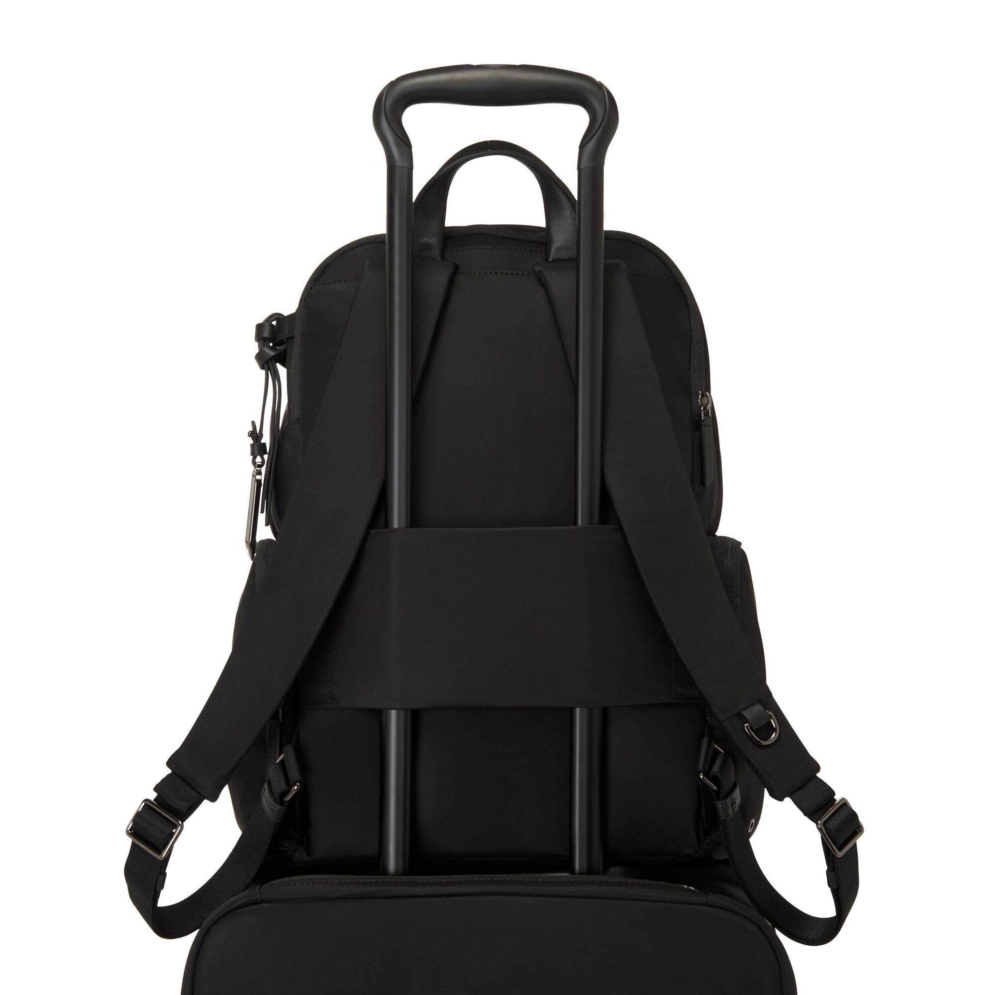 - Padded adjustable backpack straps with D-ring & loop compatible with select TUMI accessories*
