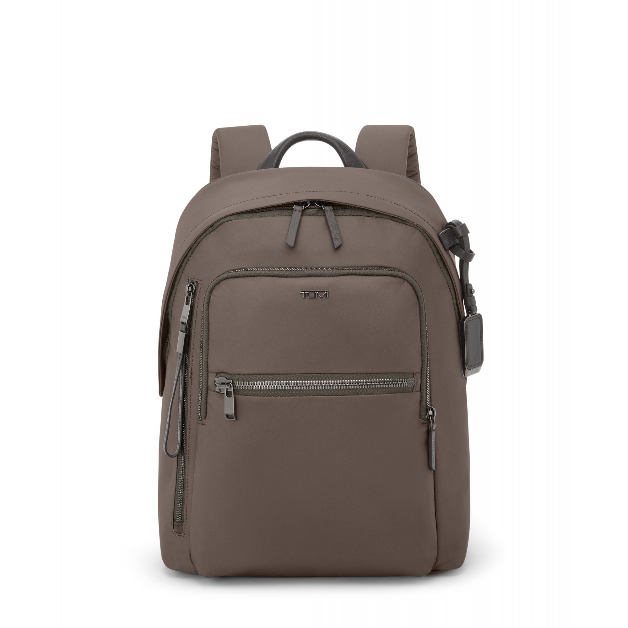 - Padded adjustable backpack straps with D-ring and loop compatible with select TUMI+ accessories*